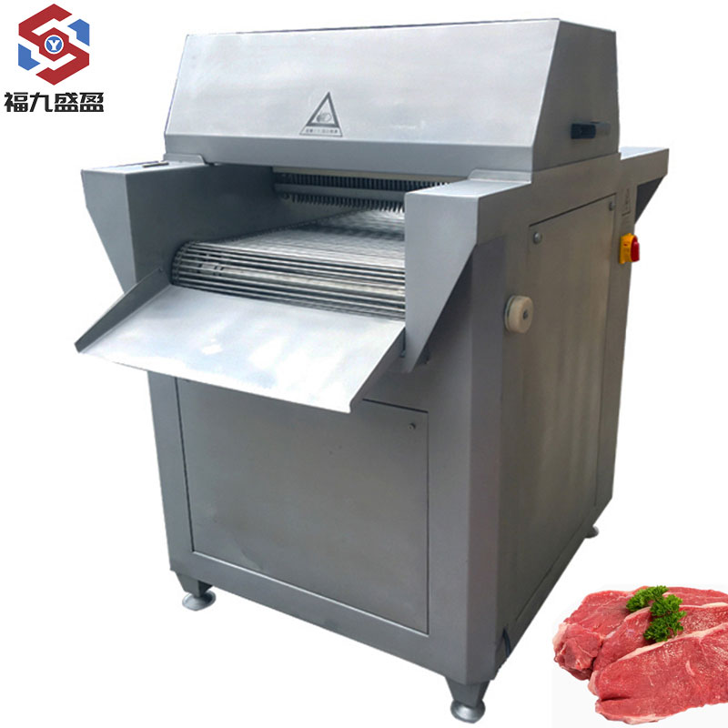 簡 介:FJY-980斷筋機是采用(yòng)目前(qián)國際(jì)先進的齒形步進技術,嫩肉效果好、使用方(fāng)法zui簡單(dān)、工藝佳、效果好的(de)嫩肉機械產(chǎn)品(pǐn),斷盤機的(de)嫩肉原理是源自歐美相關工藝設計理念並提煉升華:利用高密度的特別設計(jì)斜(xié)切細小刀鋒對所加(jiā)工牛肉進行深度纖維瞬間切割,從而從(cóng)不同角度破壞(huài)其肌纖組織,以達到較佳的嫩化狀態,而不改變(biàn)牛肉的外(wài)形。斷筋機適(shì)合工業化、及各種類型的肉類食(shí)品從業者、牛排加(jiā)工(gōng)廠、肉類精加(jiā)工等生產工(gōng)藝流程。此規格上下頻(pín)率不可調,另有帶(dài)變頻器,上下頻率可調,是理想的一款斷筋(jīn)嫩化設(shè)備!