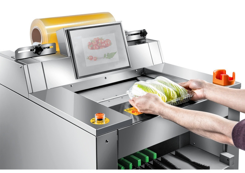 適用各種保鮮膜(PVC/PO), 建議使用機用PVC膜或機用PO膜,國產進口皆可;部分國外設備(bèi)隻能使用進口保鮮膜。有無托盤均(jun1)可包裝,且適用於多種形(xíng)態的托(tuō)盤(如圓形、六(liù)邊形(xíng)等等)