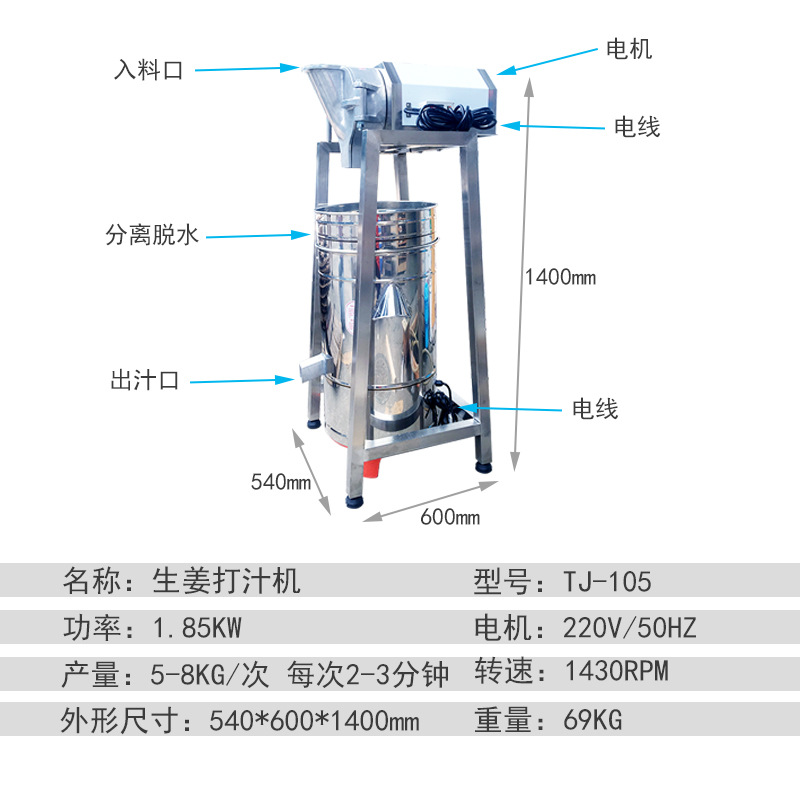 用途:將生薑處理成薑汁,並把薑汁和薑渣分離,用於豆漿、果蔬類(lèi)的打汁或分離。